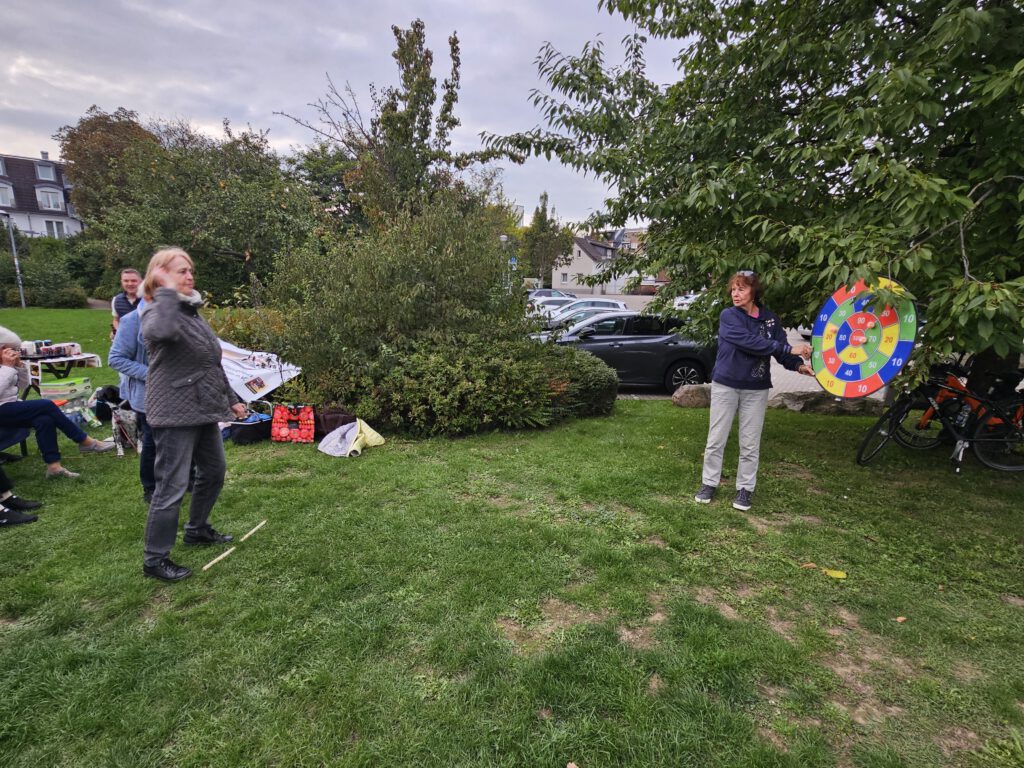 Bei strahlendem Sonnenschein traf man sich zu lockeren Gesprächen, genoss typisch englische Snacks wie Sandwiches und ließ sich ein oder zwei Guinness schmecken. Für Stimmung und Spielspaß sorgten Dart-Runden und ein ausgelassener Gummistiefel-Weitwurf — Aktivitäten, die für reichlich Heiterkeit und gute Laune bei Jung und Alt sorgten.